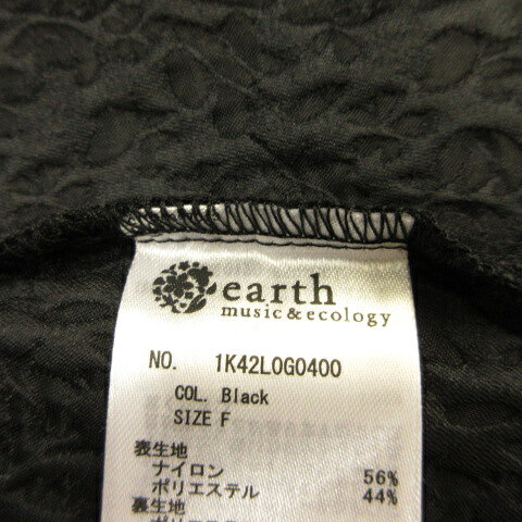 【中古】未使用品 アースミュージック&エコロジー EARTH MUSIC & ECOLOGY ぽこぽこフラワーキャミチュニック 黒 F *T379 レディース