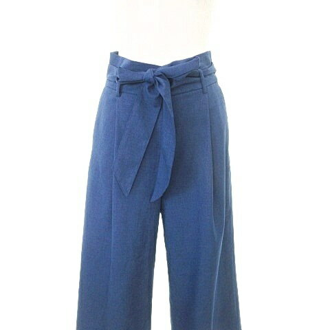 【中古】グリーンレーベルリラクシング ユナイテッドアローズ green label relaxing 美品 ワイド パンツ ボトム 38 約Mサイズ 青 ブルー