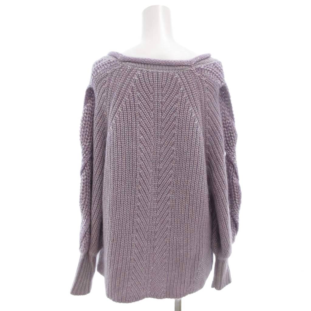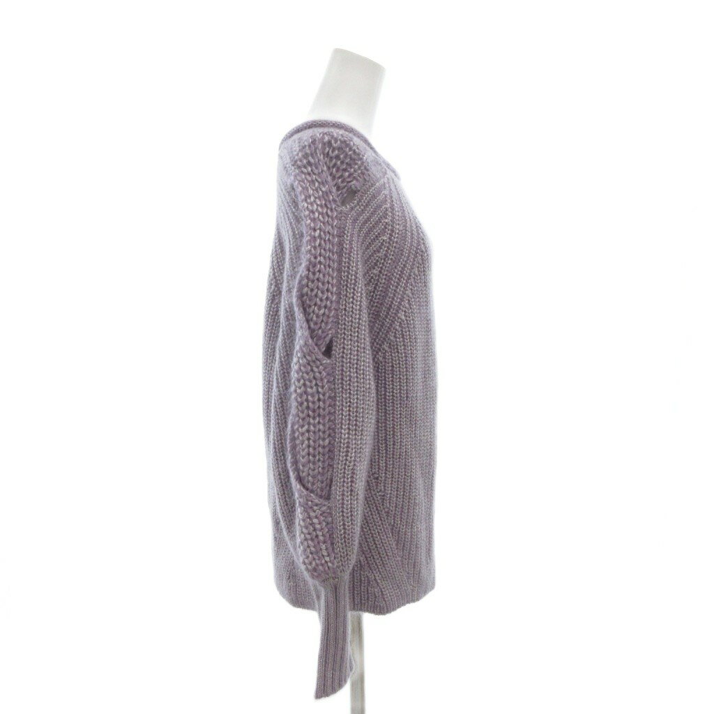 【中古】ケイシラハタ kei shirahata 美品 ニット セーター プルオーバーリブ編み V字柄 ボートネック F 紫 パープル /KR レディース