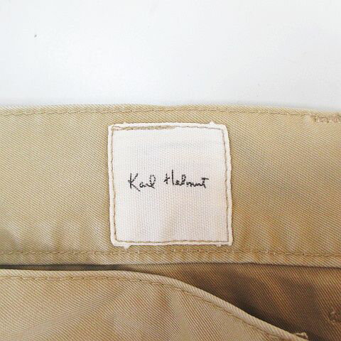 【ベクトル 古着】 251017ブランドカールヘルム Karl Helmut表記サイズL実寸サイズウエスト:76cm もも幅:35cm 裾幅:23cm 股上:31cm 股下:70cm 素材綿 100%色ベージュ系(画像参照)状態左膝あたりにシミあり、所々にシミあり。