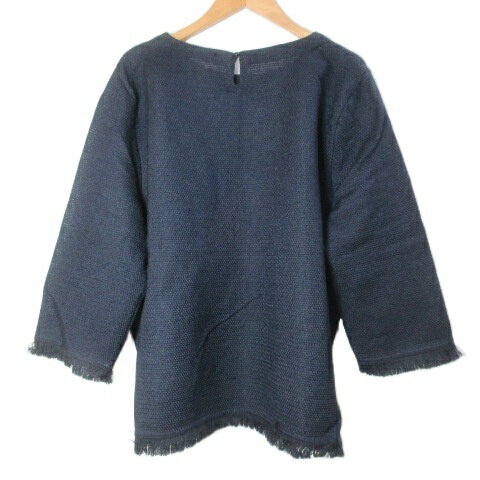 【中古】ナチュラルビューティー NATURAL BEAUTY 美品 大きいサイズ フリンジトップス ニット プルオーバー 7分袖 ウール混 17 4L相当 紺 ネイビー /X レディース