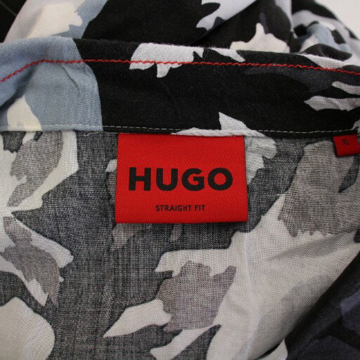 【中古】ヒューゴボス HUGO BOSS オープンカラーシャツ 半袖 カモフラ 迷彩柄 総柄 XL 水色 ライトブルー 黒 ブラック /BB メンズ