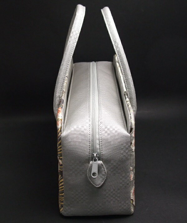 【バック】 縦 約15cm(持ち手部分除く) 横 約27cm(最大部分) マチ巾 約9.5cm(最大部分) <素材> 本体表地 絹 85% ポリエステル 10% レーヨン 5% 本体マチ部分 絹 100% 本体裏地 レーヨン 100% 持ち手 絹 100% 日本製 発送詳細 送料無料 (