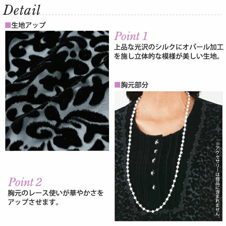 ポイント2 シルクのしなやかな肌ざわりと、ベルベットオパールの艶めきが 気品あふれる優美なチュニック。