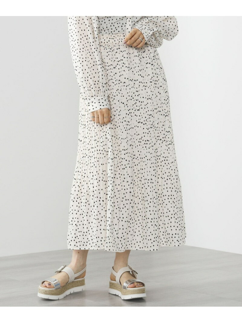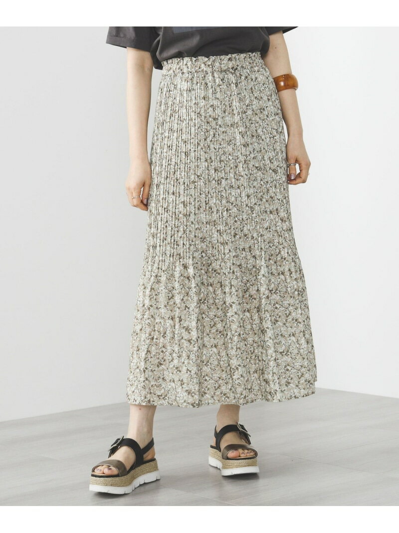 ■デザイン膝までの切り替えプリーツが入った軽やかな総柄スカート。