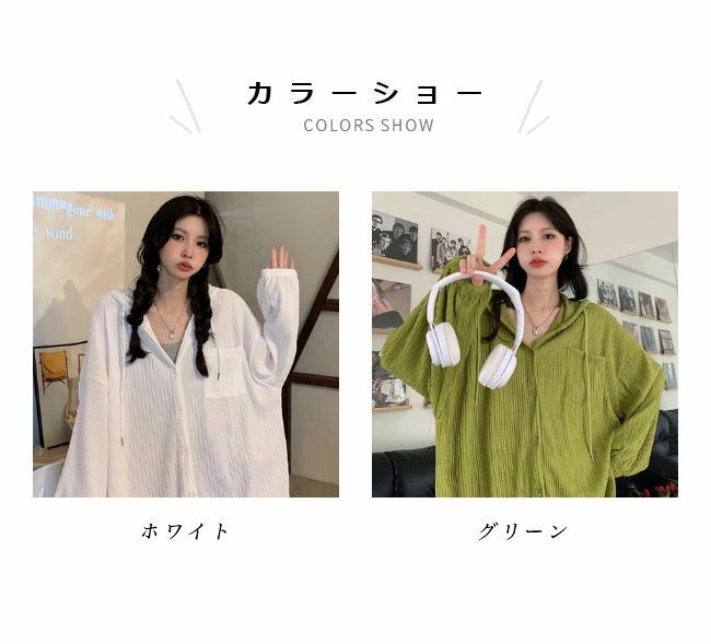 通気性に優れ、サラサラの生地感で快適な着心地、レディース薄手パーカーラフなオーバーサイズ設計なので、体型選ばずに着用できますシンプルでカジュアルなデザインは様々なコーデになじみやすい清潔感のホワイト&爽やかなグリーン、女性の雰囲気に似合う2色を用意日常から通勤まで幅広いシーンに着用できる重宝する一枚春秋コーデはもちろん、夏の冷房・日焼け対策にも活躍しますカラー:ホワイト グリーン素材 ポリエステルサイズ(cm) FF おすすめ体重40〜75kgご注意:
