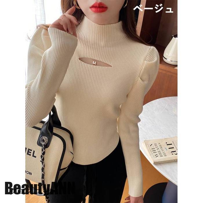 ニットセーター トップス ニットセーター レディース 長袖 ハイネック 無地 秋 冬 リブニット 大人 女子 カジュアル 通勤 上品 ニットソー カジュアル21