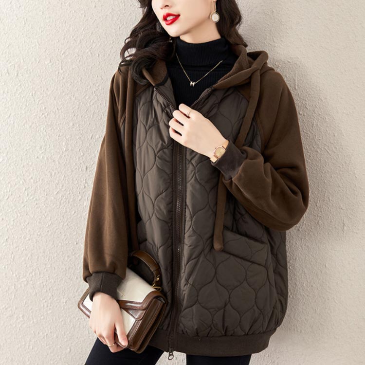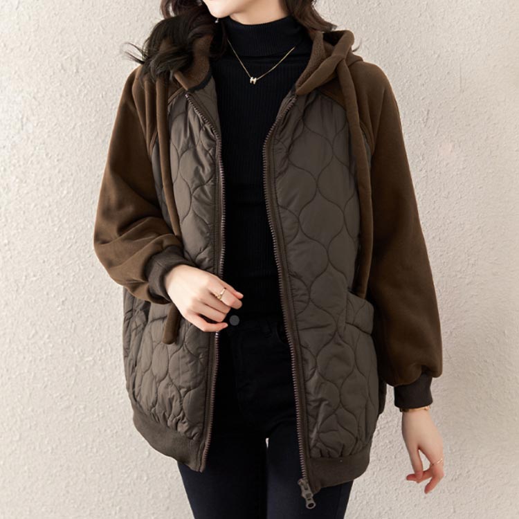 スウェットの切り替えが新鮮に魅せるキルティングジップアップパーカー。