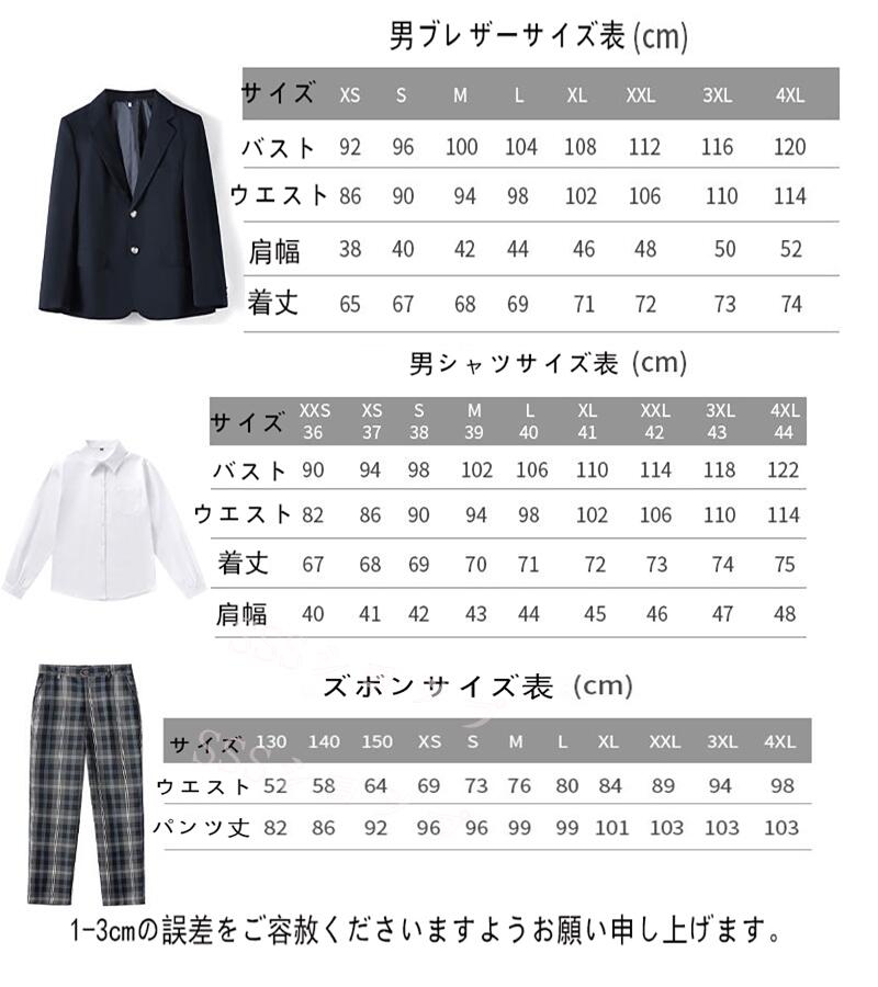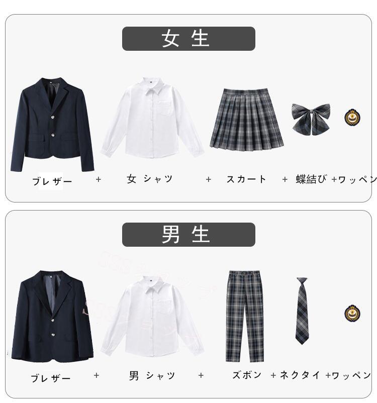 商品紹介jk 制服 ブレザー5点セット 男/女制服 カップルセット 女子 スカートセット 男子ズボンセット 入学 高校 中学 学生服 XS-4XL素材:ポリエステル商品内容:女子:ブレザー+シャツ+スカート+蝶結び+ワッペン贈靴下男子:ブレザー+シャツ+ズボン+ネクタイ+ワッペン