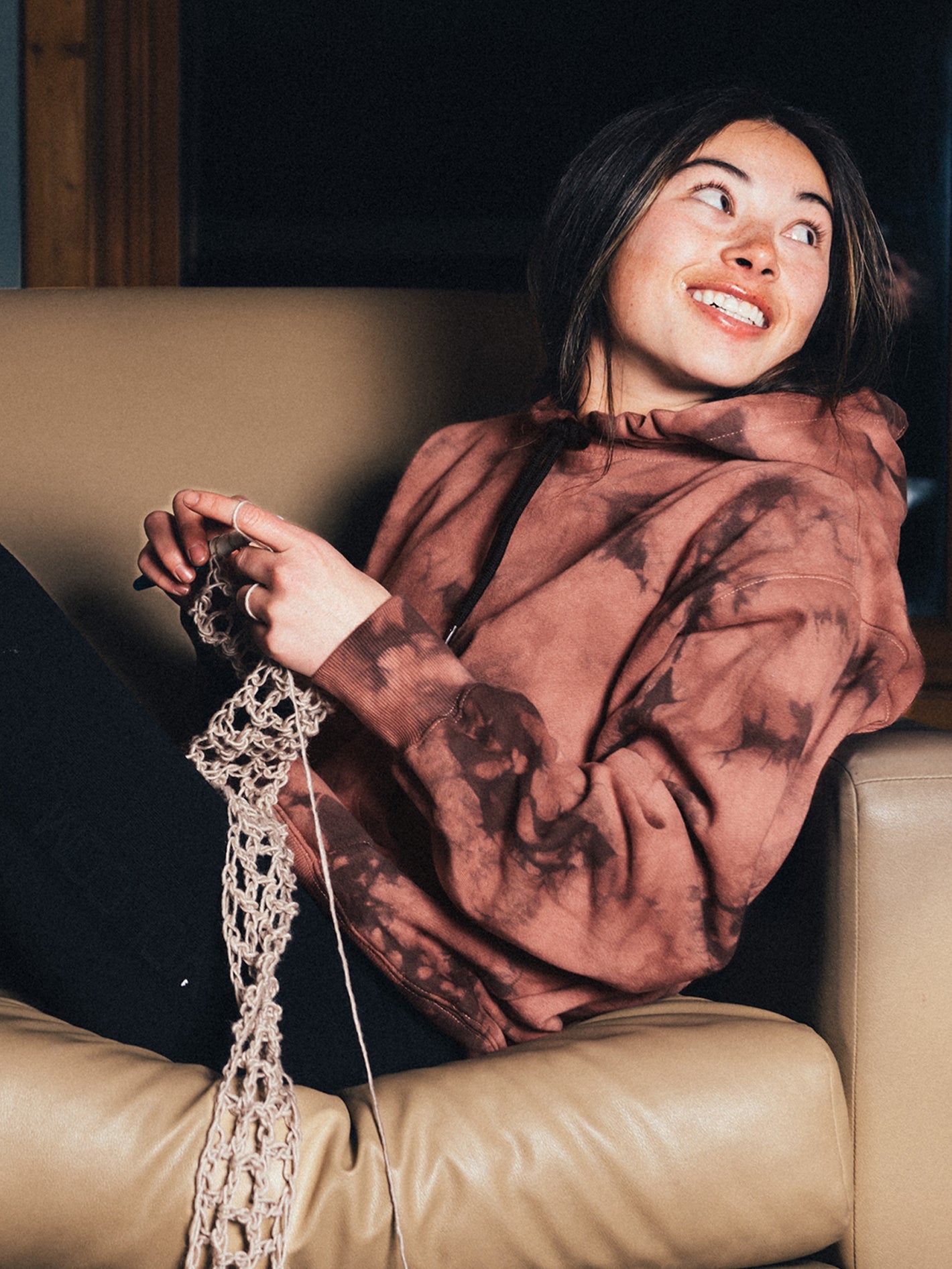 ・フリース320g ・コットン80%、ポリエステル20% ・スタンダード・フィット ・ドローコード付きシンチフード ・袖口リブ ・裾リブ編み ・セス・コンボーイ・バタフライ・スクリーンプリントバック