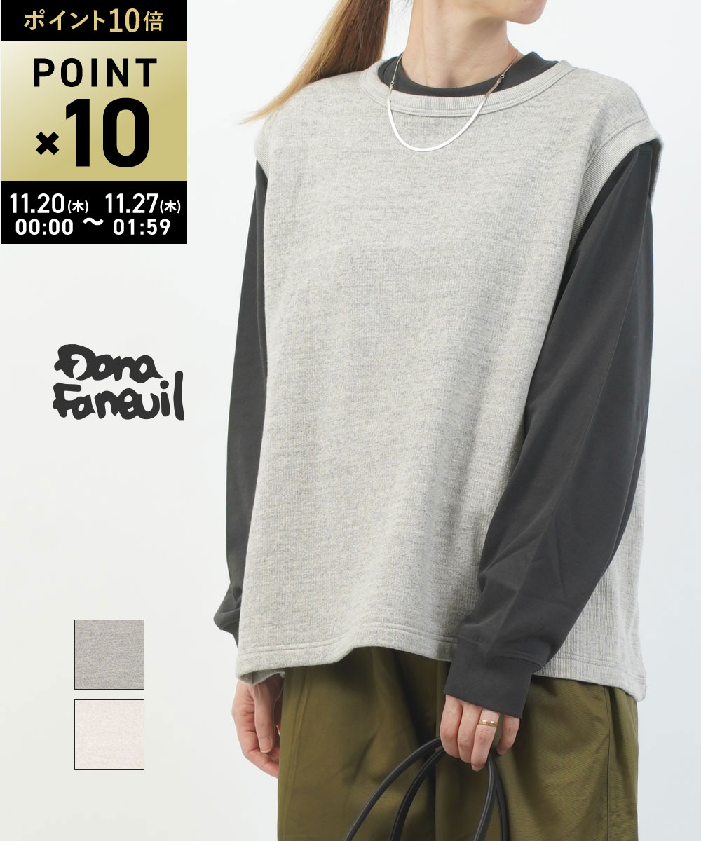 >>ギフト対応について 情報 DANA FANEUIL(ダナファヌル) ベスト スウェット トップス プルオーバー ノースリーブ フレンチスリーブ コットン 無地 裏毛 レイヤード シンプル 3飛びガーゼ裏毛ベスト・D-2225343