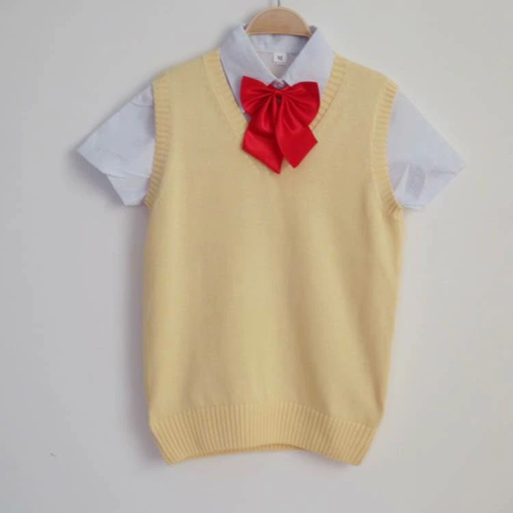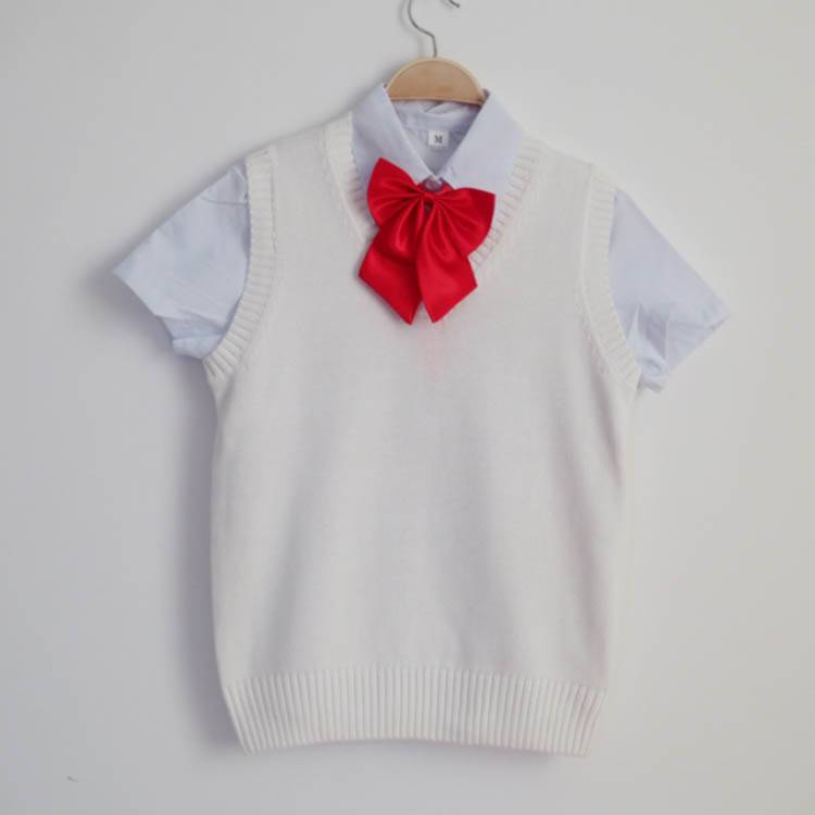 デザインにこだわった、定番の無地コットンニットベスト★ 学校指定制服にも合わせやすいシルエット♪ シャツやワンピースとレイヤードするコーデがイチオシです。