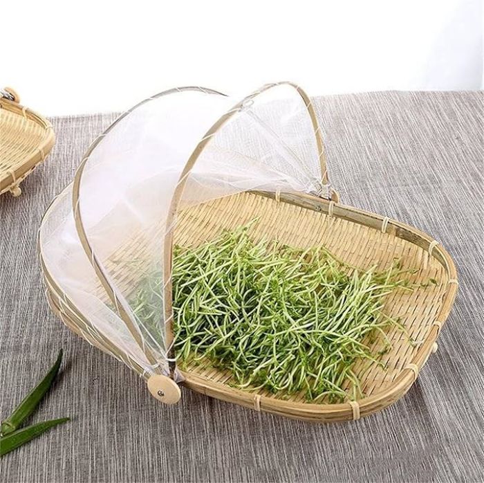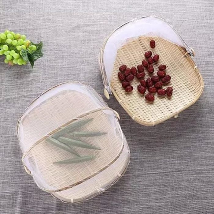 夏のピクニックに最適なプレートカバー! この竹ざる、家庭、ピクニック、キャンプに適しています。