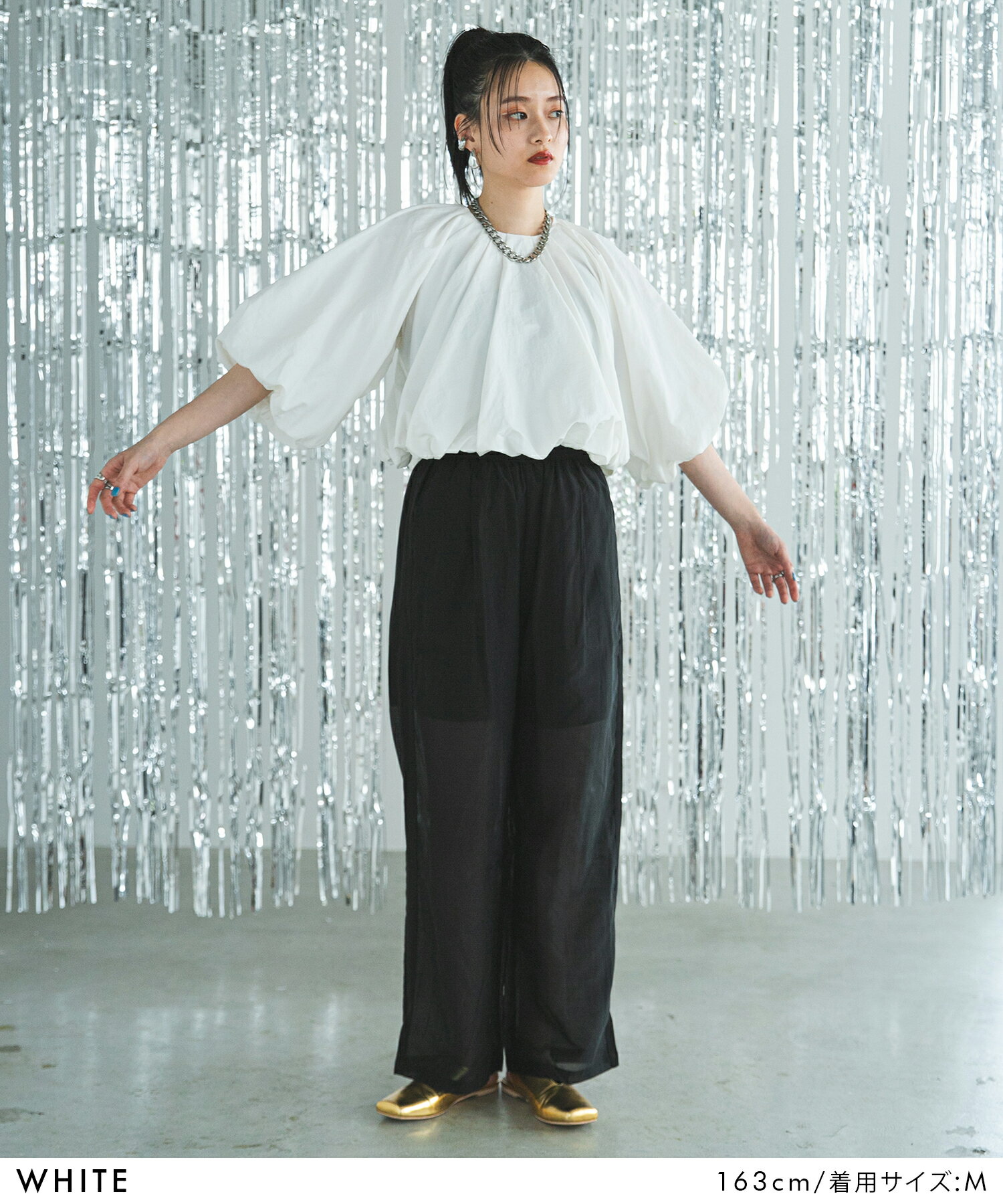 ※モニターの発色により実際と異なる場合がありますPOINT 裾も袖もボリュームたっぷりなバルーンシルエットトレンド顔なブラウストップス
