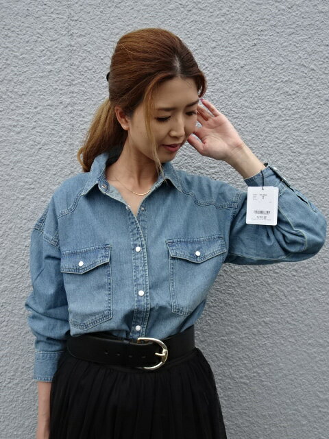 (正規販売店取扱商品) ●品番 412-25000 モデル身長167cm (B:84 W:60 H:90) サイズ 38 モデル着用 ●肩幅 38cm ●着丈 72cm ●袖丈 57.5cm ●アームホール 25.5cm×2 ●二の腕周り 21cm×2 ●袖口 10.5cm×2 ●B 56cm×2 ●W 57cm×2 ●H -cm×2 ●裾幅 60cm×2 ●色 ライトブルー(64) ブルー(66) ●素材 タグ参照 オールシーズン使えるコーディネートに便利なデニムシャツです。