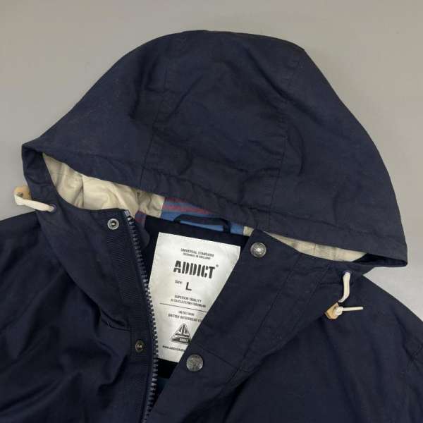 商品情報メーカーアディクト / ADDICT形状ジャケット、上着 / ジャンパー、ブルゾンサイズ表記サイズ:L肩幅:50 cm、袖丈:69 cm、着丈:79 cm、身幅:59 cmカラー紺 / ネイビー柄 / パターン素材商品状態使用感があり、汚れやダメージがあるお品物です。