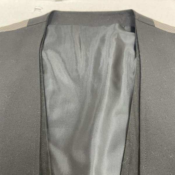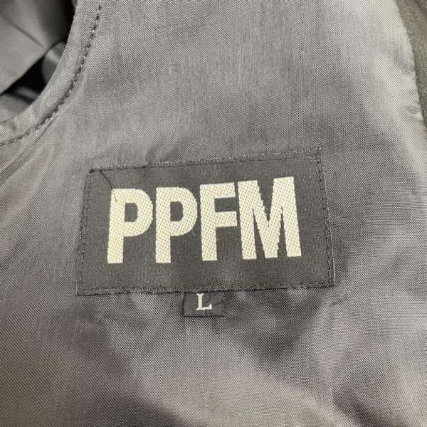 商品情報メーカーピーピーエフエム / PPFM形状ベスト / ベストサイズ表記サイズ:L身幅:47 cm、総丈:57 cmカラー黒 / ブラック、灰 / グレー柄 / パターンストライプ、無地素材ポリエステル、毛(ウール)商品状態着用感がありますが、汚れやダメージが比較的少ないお品物です。