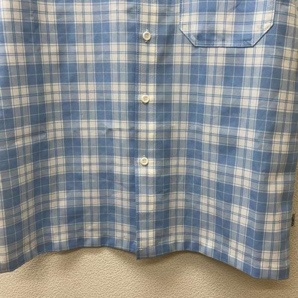商品情報メーカー古着 / USED形状シャツ、ブラウス / 半袖サイズ表記サイズ:M肩幅:56 cm、袖丈:24 cm、着丈:78 cm、身幅:60 cmカラー水色 / ライトブルー柄 / パターン素材商品状態着用感がありますが、汚れやダメージが比較的少ないお品物です。