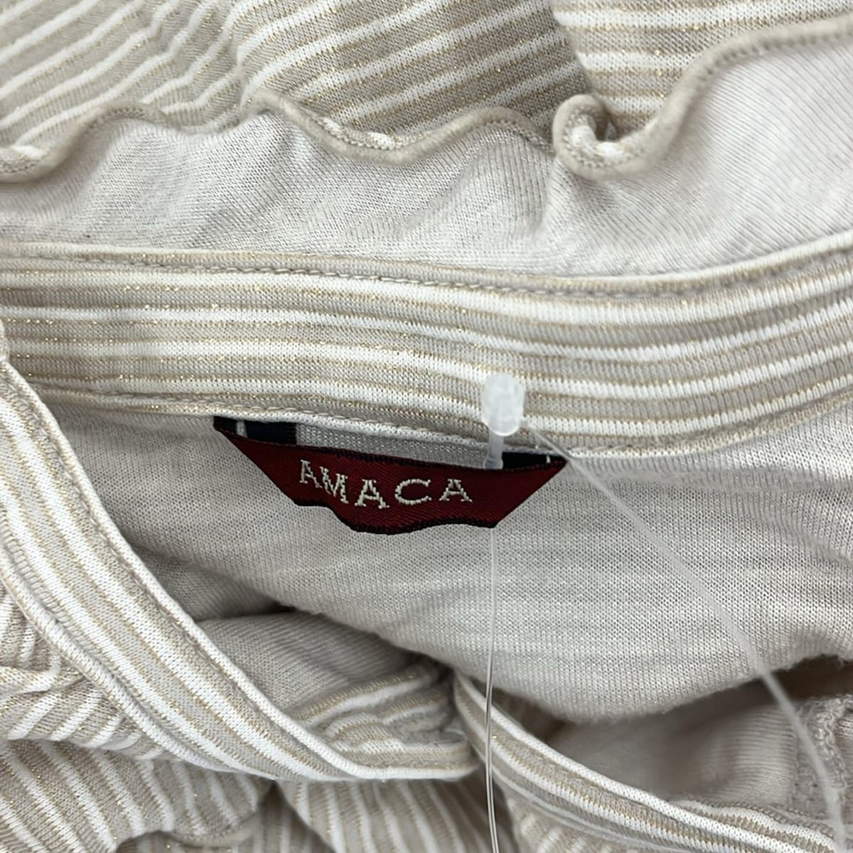 【中古】AMACA(アマカ) カーディガン フリル/ボーダー/ラメ ベージュ×白×ゴールド ジャンル カーディガン ブランド AMACA(アマカ) 男女別 レディース表記サイズ 38実寸サイズ 肩幅 : 約 37 cm袖丈 : 約 36 cm身幅 : 約 43 cm着丈 : 約 52 cmカラー ベージュ×白×ゴールドデザイン -フリル/ボーダー/ラメ 素材 画像参照コンディションレベル