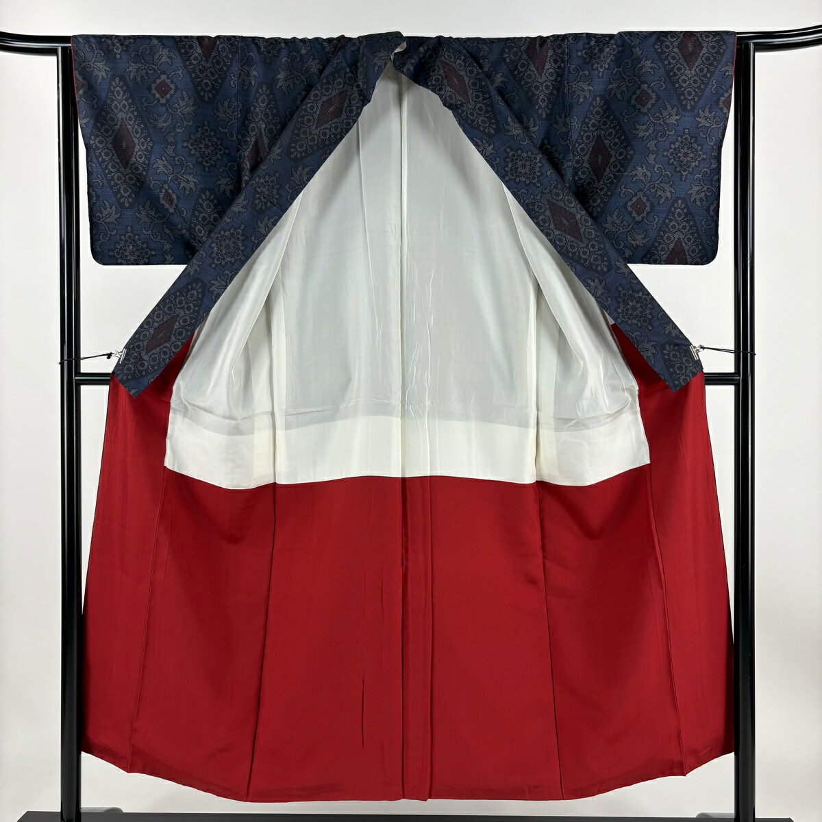 着物ランク 秀品 素材 正絹 色 紺色 身丈 約150cm 裄丈 約64cm 袖丈 約46cm 袖幅 約33cm 前幅 約25cm 後幅 約31cm サイズ M 着物仕立て 袷 着用時期 10~5月 コメント 普段着やおしゃれ着として人気の紬でございます。