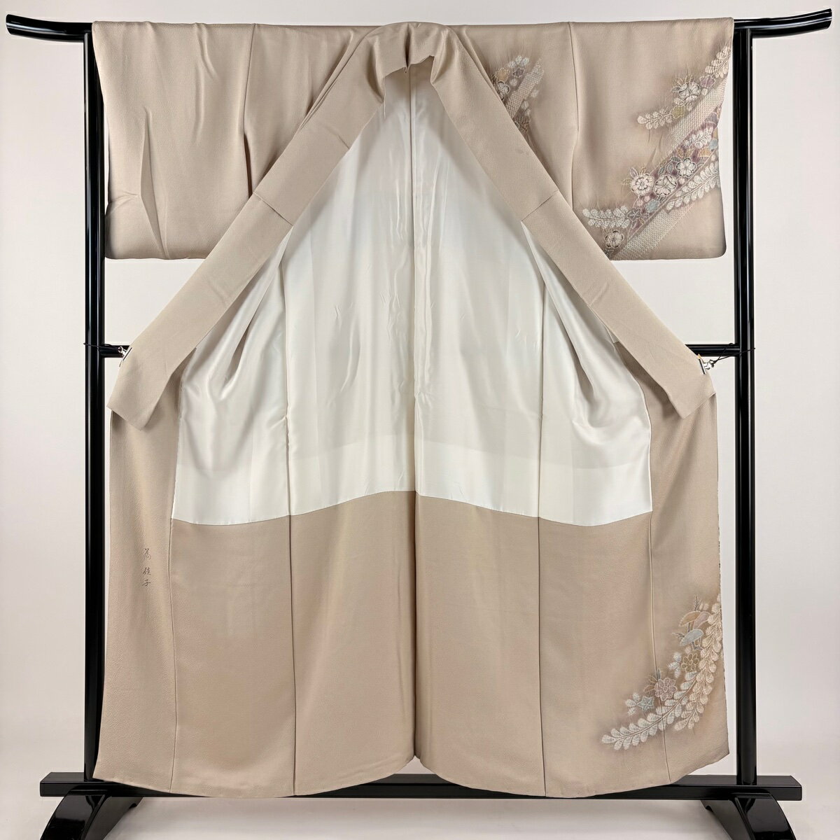 着物ランク 名品 素材 正絹 色 灰茶 身丈 約155.5cm 裄丈 約65cm 袖丈 約49cm 袖幅 約32.5cm 前幅 約25cm 後幅 約30.5cm サイズ M 着物仕立て 袷 着用時期 10~5月 コメント 伝統的な辻が花の技法を取り入れた鮮やかな作品を多く手掛ける樋熊哲也氏の作品です。