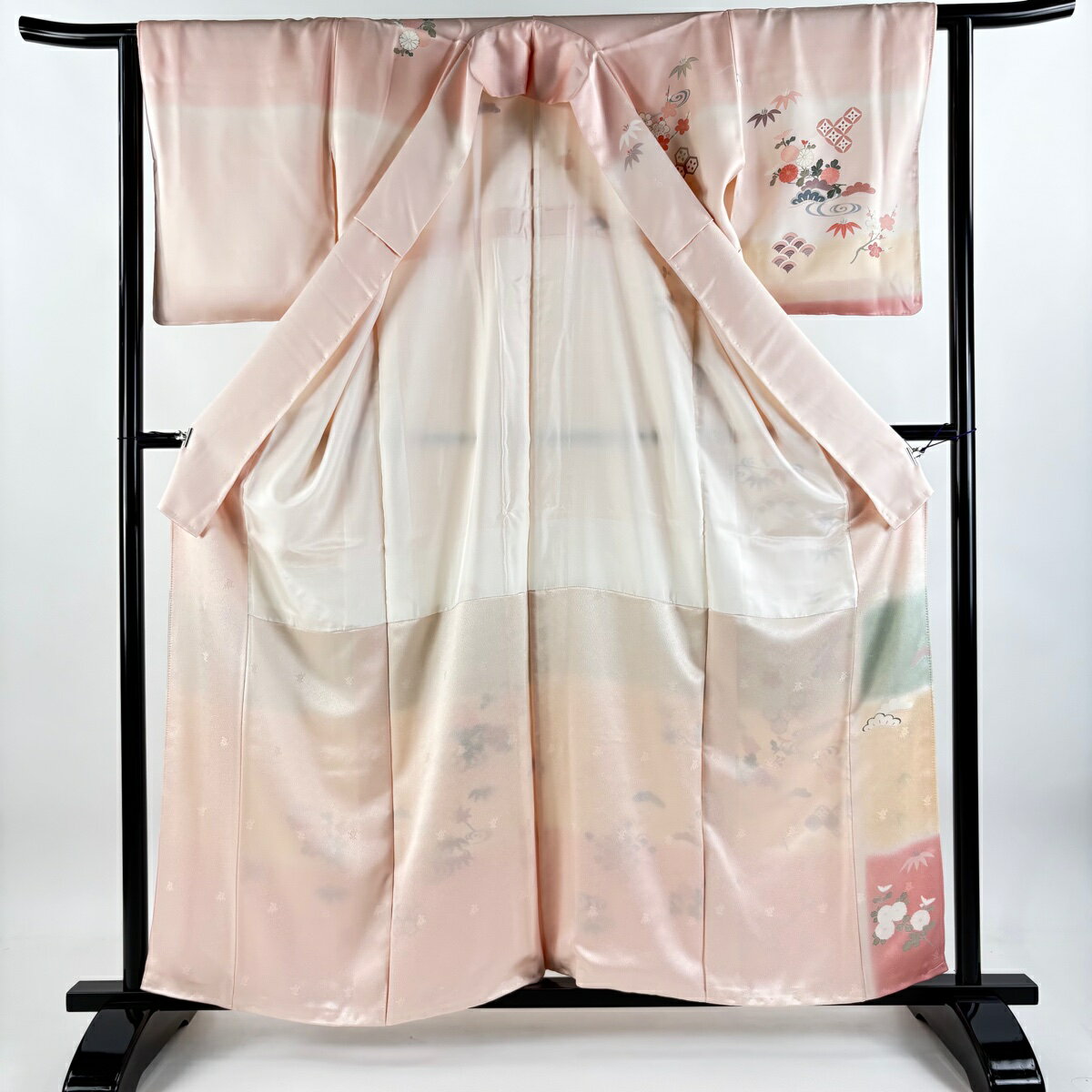 着物ランク 秀品 素材 正絹 色 ピンク 身丈 約160cm 裄丈 約63cm 袖丈 約49cm 袖幅 約32.5cm 前幅 約24.5cm 後幅 約30cm サイズ S 着物仕立て 袷 着用時期 10~5月 コメント 帯次第で幅広くお使いいただける素敵な訪問着です。