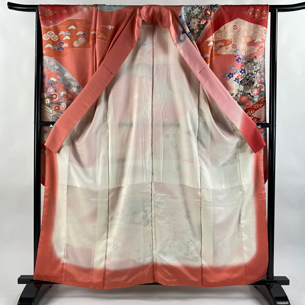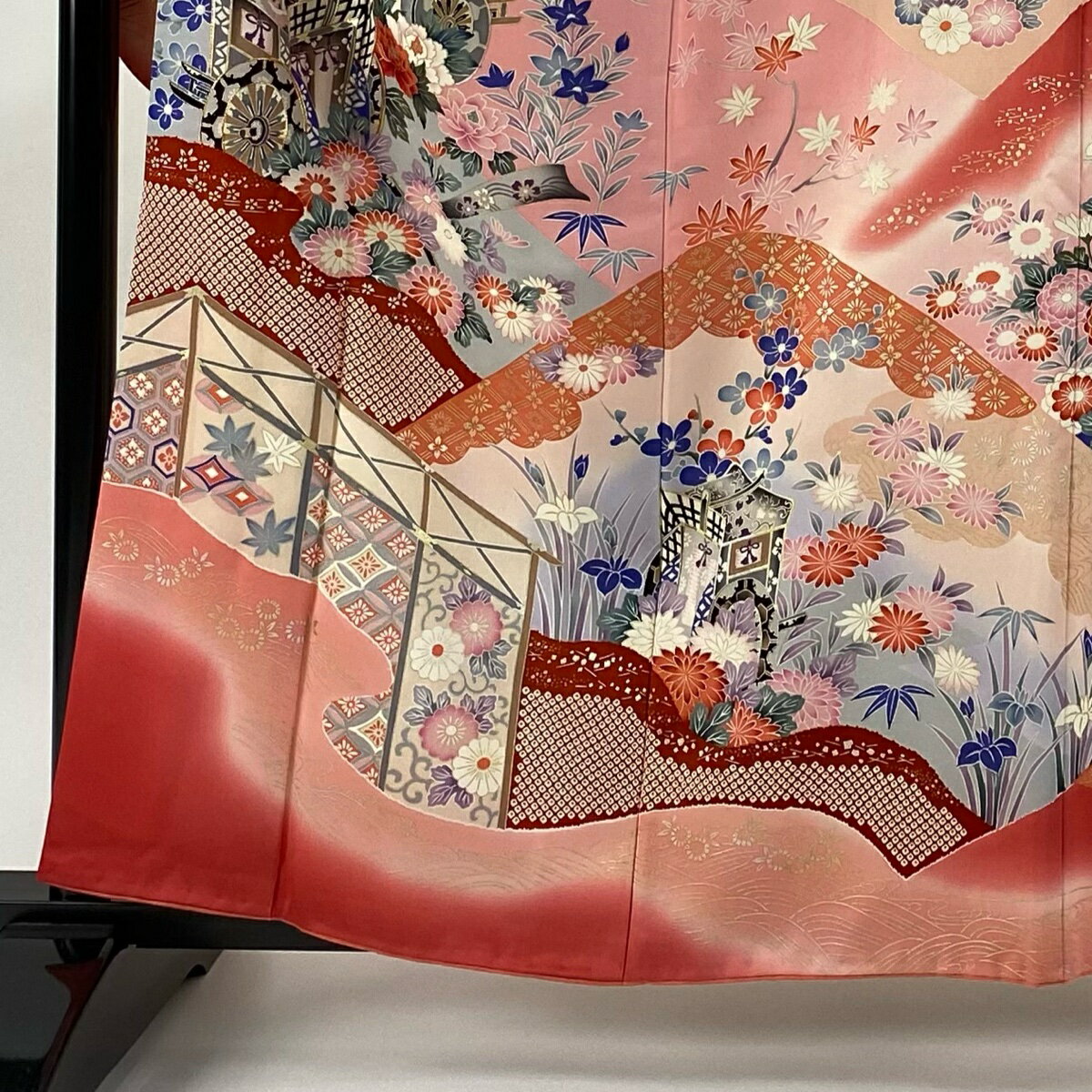 着物ランク 優品 素材 正絹 色 ピンク 身丈 約159cm 裄丈 約64.5cm 袖丈 約104cm 袖幅 約33cm 前幅 約24cm 後幅 約29.5cm サイズ M 着物仕立て 袷 着用時期 10~5月 コメント 未婚女性の第一礼装としてお使いいただける振袖でございます。