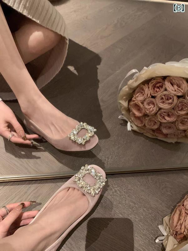 パンプス レディース フラット ぺたんこ 羊革 スエード調 ローヒール スクエアトゥ ビジュー バックル付き 結婚式 パーティー 通勤 オフィス 普段使い 黒 ブラック ピンク ベージュ 春夏 秋冬