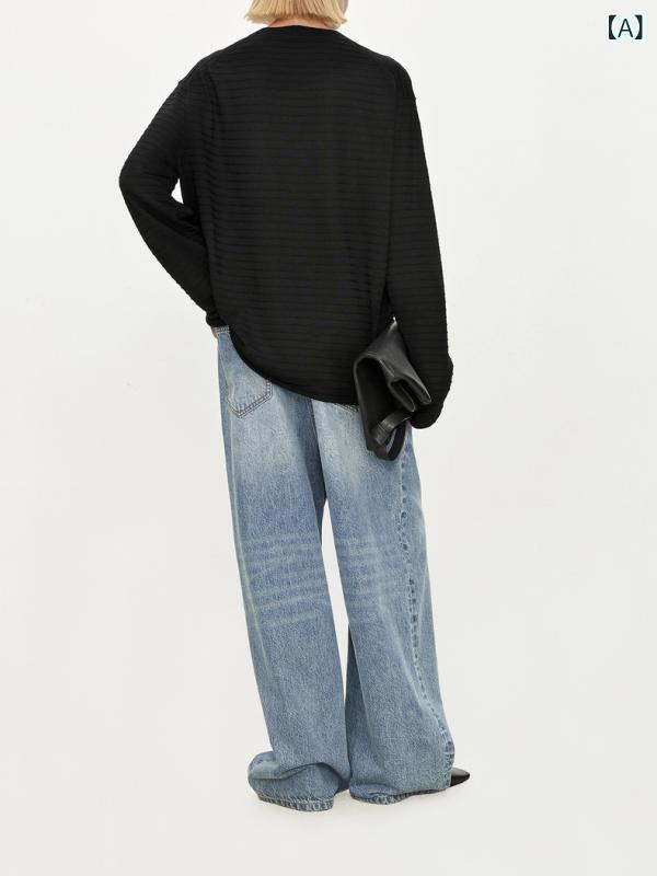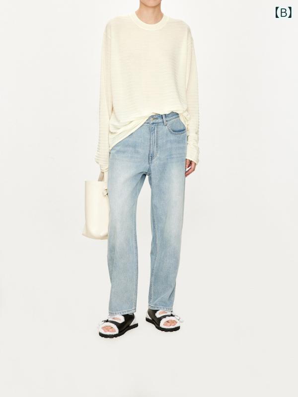 ニット レディース 桑蚕丝 絹 ウール混紡 ボーダー柄 丸首 長袖 トップス プルオーバー カットソー エレガント 通勤 薄手 グレー系 ホワイト ネイビー ミント ブラック