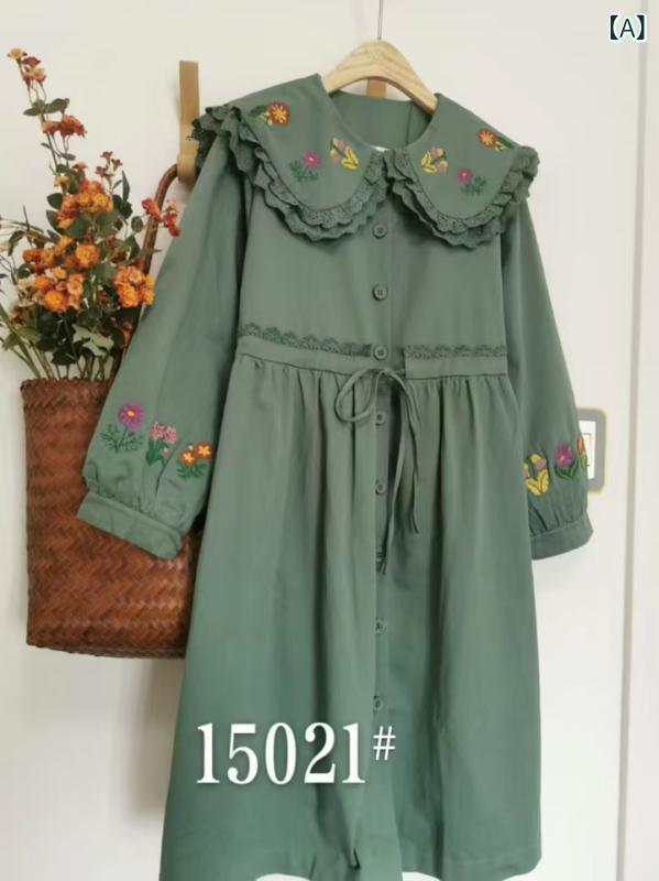 2個セットコート レディース 春秋物 長袖 コットン 娃娃襟 森ガール アウター 緑 フリーサイズ 文芸風 レトロ かわいい
