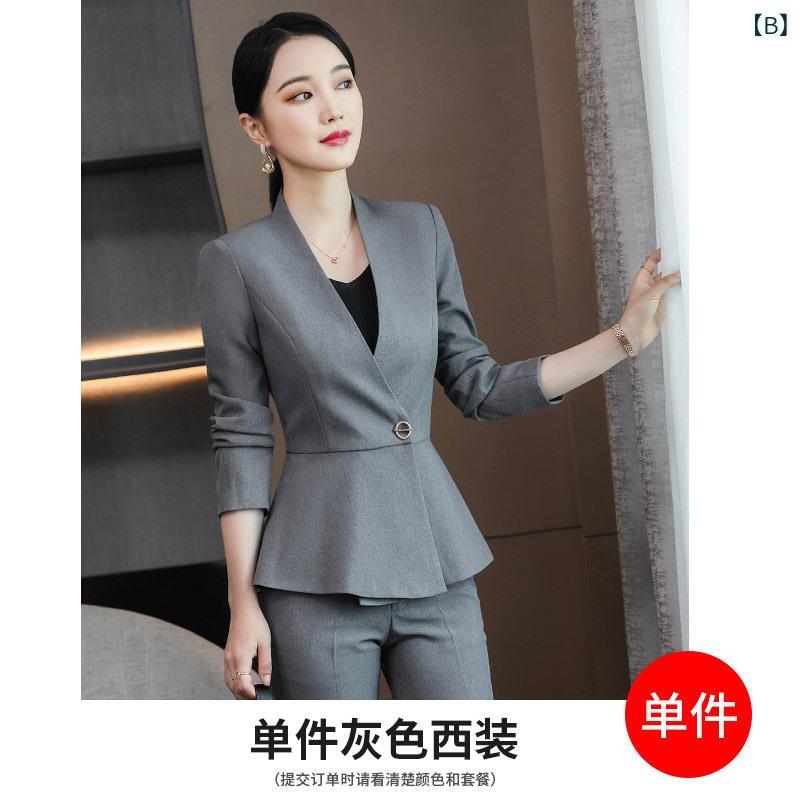 スーツ レディース フォーマル セットアップ パンツ スカート 事務服 面接 ビジネス オフィス 通勤 ポリエステル グレー 無地 長袖・素材: ポリエステル.スパンデックス・カラー: グレー・サイズ: S.M.L.XL.XXL.XXXL.XXXXL.5XL・パンツ丈: 長ズボン・袖丈: 長袖・袖のタイプ: レギュラー袖・生地: ポリエステル・主な生地の情報を削除してください。