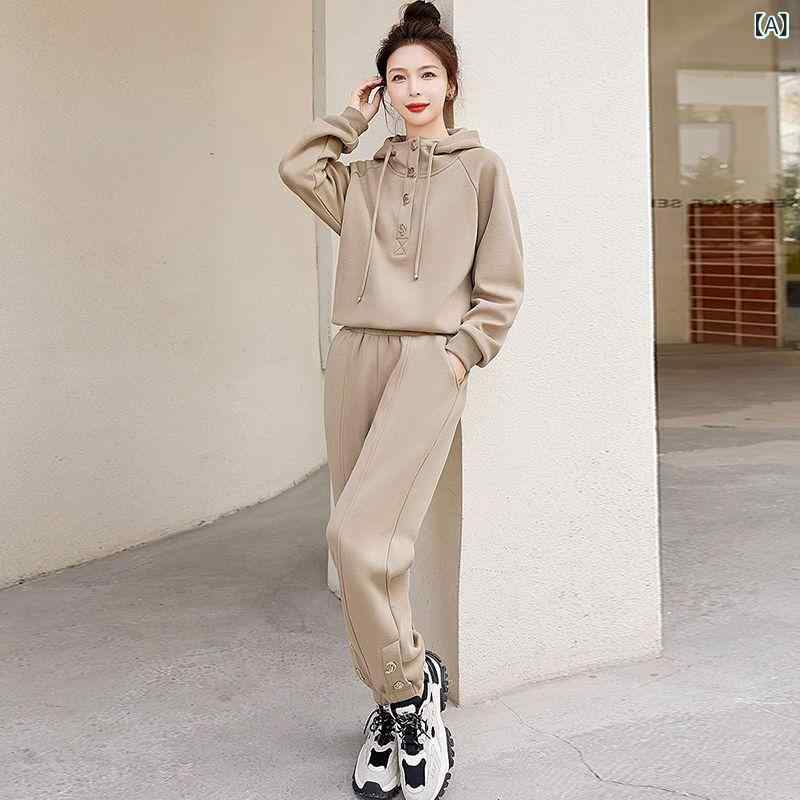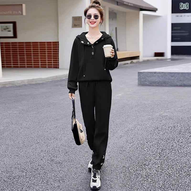 2レディース スウェット セットアップ ジャージ 上下セット 女性用 長袖 パーカー ロングパンツ 部屋着 ルームウェア スポーツウェア カジュアル 無地 綿混紡 春秋 接触冷感 吸湿速乾 ブラック カーキ