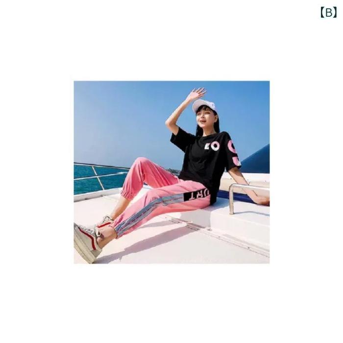セットアップ レディース 2点セット 韓国 ジャージ 上下セット 幾何学模様 ポリエステル 通勤風 快適 接触冷感 半袖 S M L XL XXL ホワイト ブラック