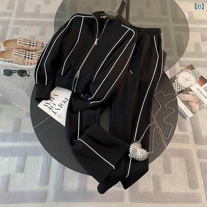 スウェット レディース セットアップ 秋冬 部屋着 ジャージ 上下 韓国 大きいサイズ ゆったり 運動着 普段使い パジャマ ポリエステル 黒 白
