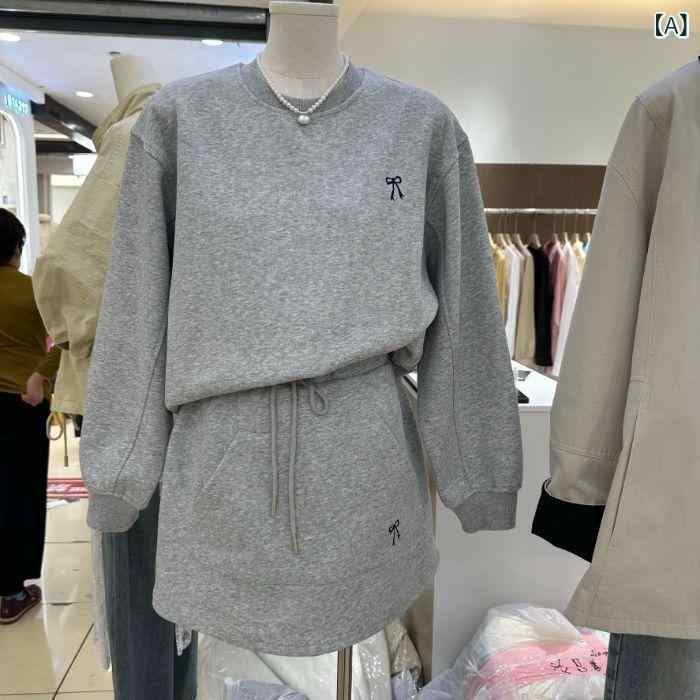 セットアップ レディース 春秋 衛衣 スカート 2点 セット 韓国 快適 普段使い リラックス ウェア 部屋着 かわいい グレー ブルー 杏色
