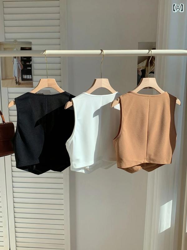 ベスト レディース スリムフィット ショート丈 重ね着風 エレガント Vネック 無地 ポリエステル オフィススタイル 通勤着 普段使い 花柄
