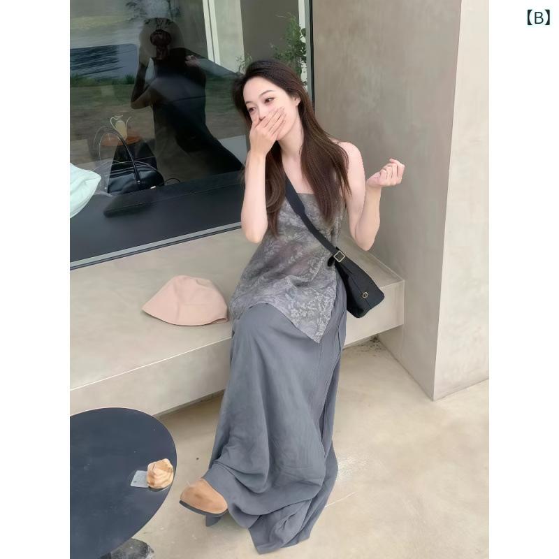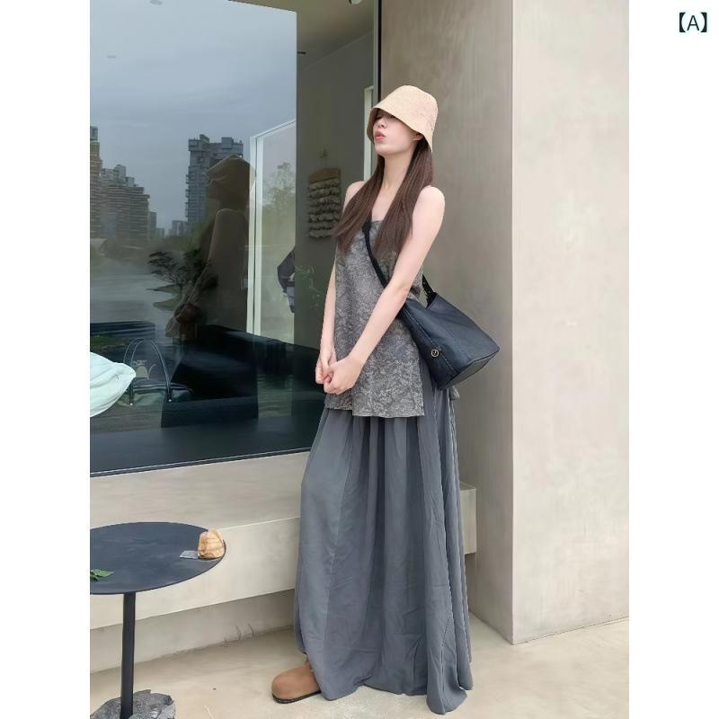 ワンピース レディース 春夏 セットアップ 吊り下げキャミソール トップス スカート 2点セット ロング丈 ポリエステル エレガント 通勤 オフィス カジュアル・裙丈: ロング・流行の要素: 無地・加工: 防しわ加工・生地名: ポリエステル・主な生地の成分: その他・カラー: トップス, スカート, セットアップ・サイズ: S, M, L, XL・スタイル: 通勤・スタイル: 都市風・セットアップのタイプ: スカート・適用性別: 女性・袖のタイプ: フレアスリーブ・袖丈: エクストラロング・製品カテゴリ: カジュアルセットアップ