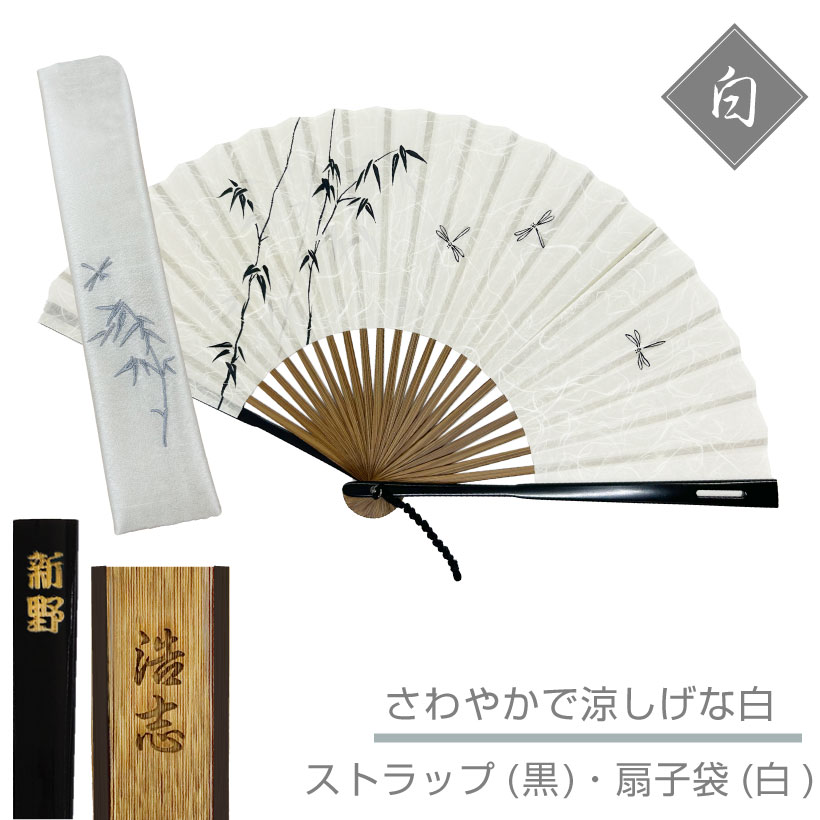 素材 扇子:和紙・絹 / 竹 付属 ストラップ(緑)(青)・扇子袋・天然石・桐箱画像の色と実際の商品の色が多少異なる場合がございますご了承下さい。