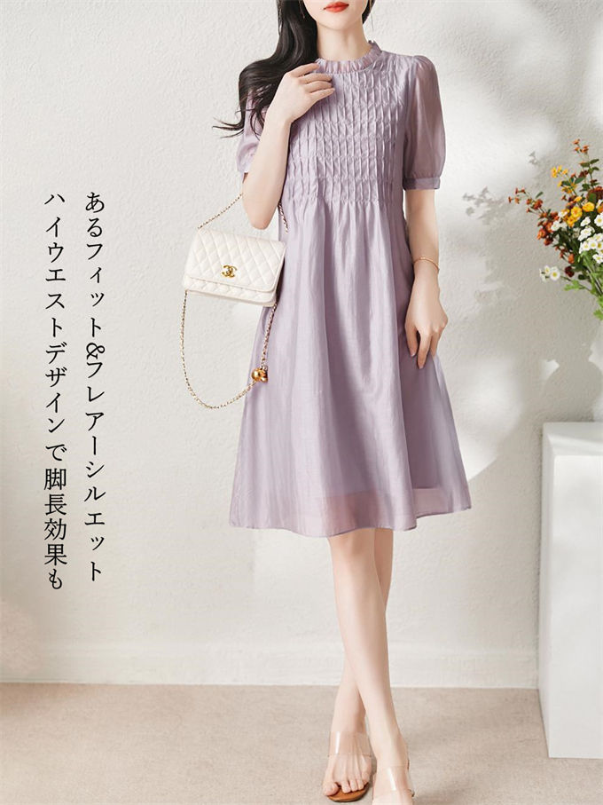 ミディアム丈でガーリーさをプラスしたドレスです。