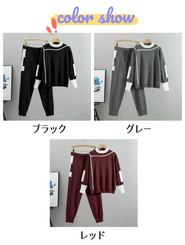 セットアップ レディース 2点セット ニット パンツ セーター パンツスーツ ロング丈 トップス ゆったり 長袖 秋冬 セットアップ レディース 2点セット ニット パンツ 5