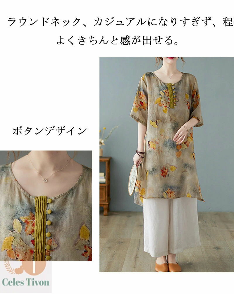 見ているだけでも心ときめくナチュラルな 色柄のチュニック。