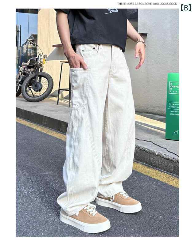 ・性別: メンズ・素材: デニム コットン60%・色: ネイビー,オフホワイト・サイズ: S,M,L,XL,2XL,3XL・スタイル: ベーシック・パンツシルエット: ストレート・丈: ロングパンツ・ウエスト: ローライズ・前立て: ジップ開き・厚み: 薄手・デザイン: 無地・裾: ストレート・加工: ウォッシュ・特殊加工: 手描き・シーン: デイリー