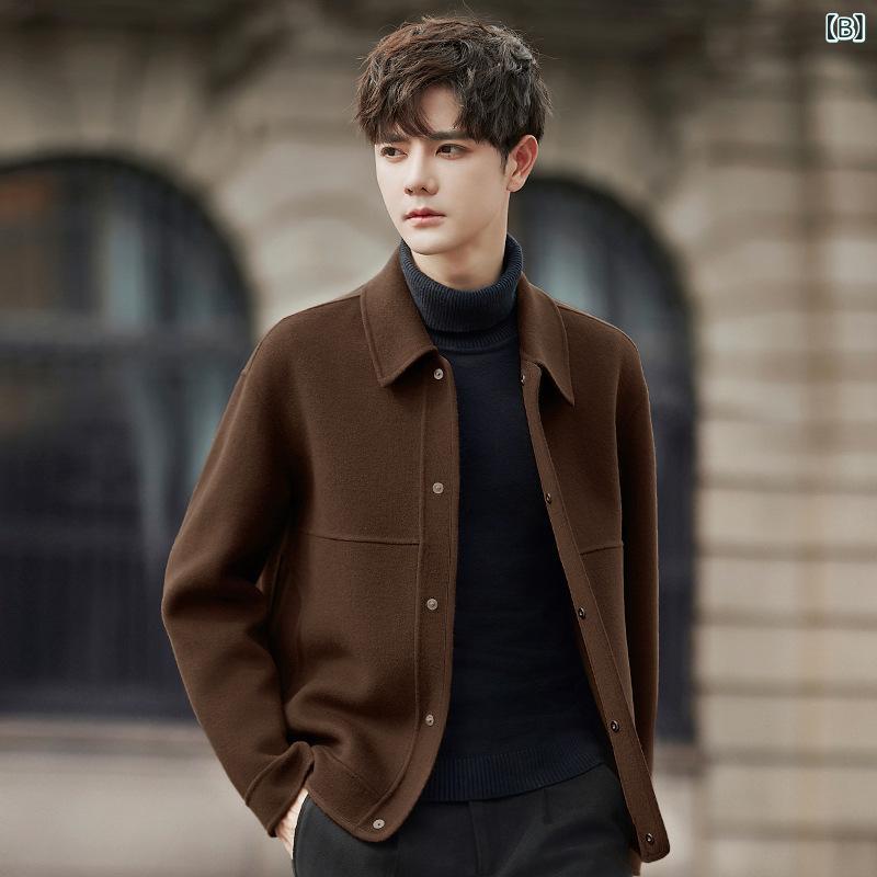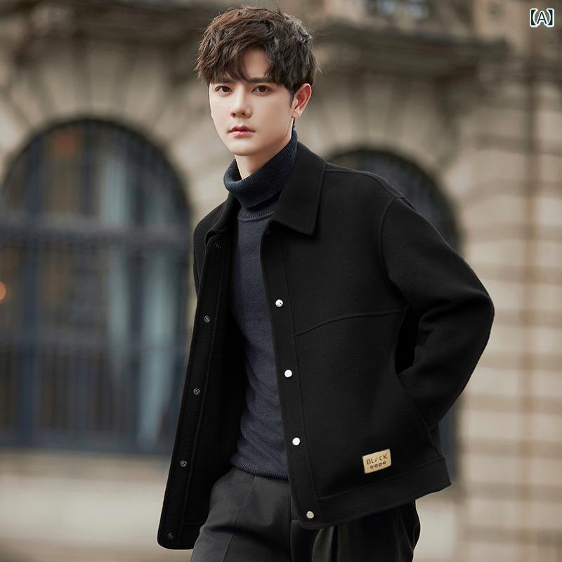 ・スタイル: 韓国風・シルエット: フィット・厚み: 普通・前立て: シングルブレスト・対象: 青少年・素材: 羊毛・成分: 羊毛66.3%、ポリエステル33.7%・裏地: ダブルフェイス・用途: カジュアル・襟型: ラペル・柄: 無地・加工: ノンアイロン処理・ディテール: パッチ装飾・ポケット: サイドシームポケット・裾: 本布裾・色: ブラック,ブラウン,グレーグリーン・サイズ: S,M,L,XL,2XL,3XL