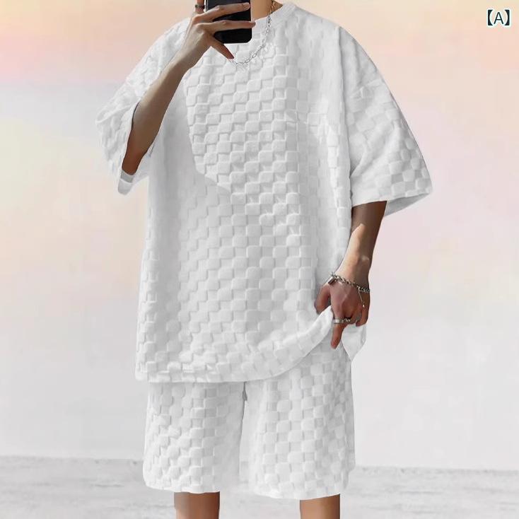 ・スタイル: 軽熟カジュアル・厚み: 普通・パンツ丈: ショートパンツ・上着スタイル: Tシャツ・袖丈: 短袖・生地: 化学繊維混紡・主生地成分: ポリエステル65%・適用シーン: カジュアル・カラー: ホワイト,グレー,ブラック,アプリコット・サイズ: S,M,L,XL,XXL,XXXL