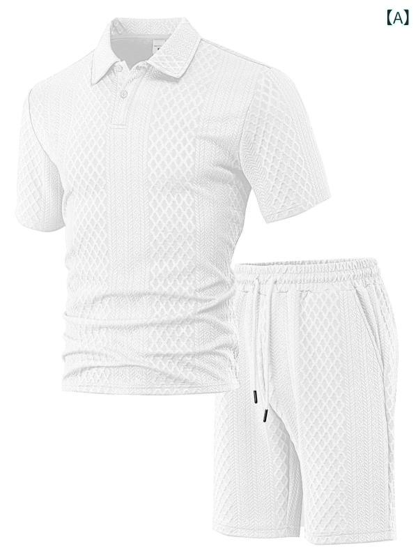 ・スタイル: スポーツカジュアル・厚み: 薄手・パンツ丈: ショーツ・トップスタイル: ポロシャツ・袖丈: 半袖・生地: 提花布・主素材成分: ポリエステル100%・適用シーン: カジュアル・カラー: ホワイト,ネイビー,ブラック,カーキ,グレー,ライトブルー・サイズ: S,M,L,XL,XXL,XXXL