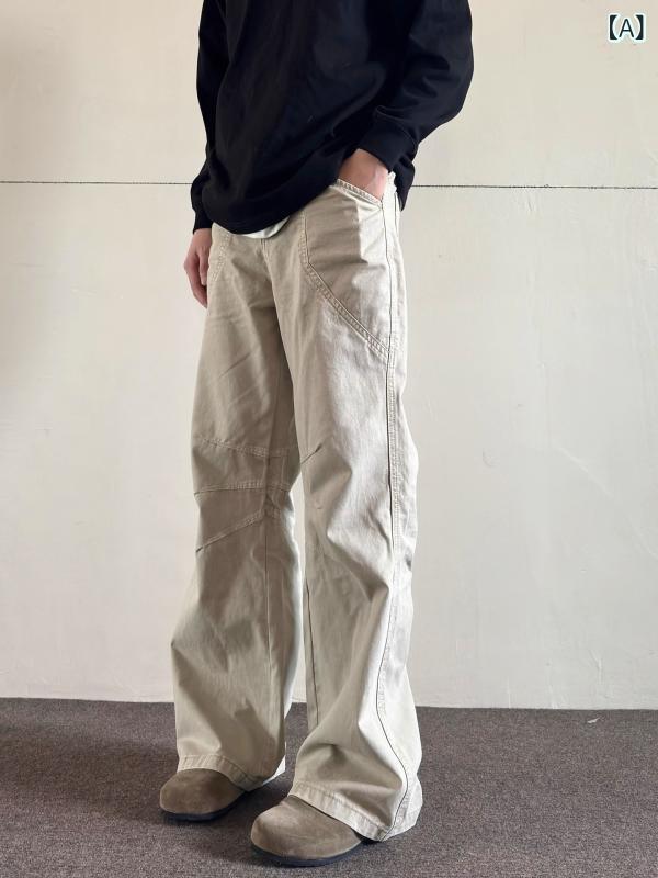 ・スタイル: ストリート・形状: ストレートパンツ・シルエット: ルーズ・丈: ロングパンツ・ウエスト位置: 中腰・前立て: ジッパー・厚み: 普通・適合季節: 春秋・素材: デニム・主素材成分: ポリエステル・主素材成分含量: 90%以上・ディテール: ポケット装飾・ストレッチ性: 微弾性・レッグ形状: ストレート・加工: ノンアイロン・カラー: カーキ,ブラウン・サイズ: S,M,L,XL,2XL,3XL・洗い加工: 水洗・対象性別: メンズ
