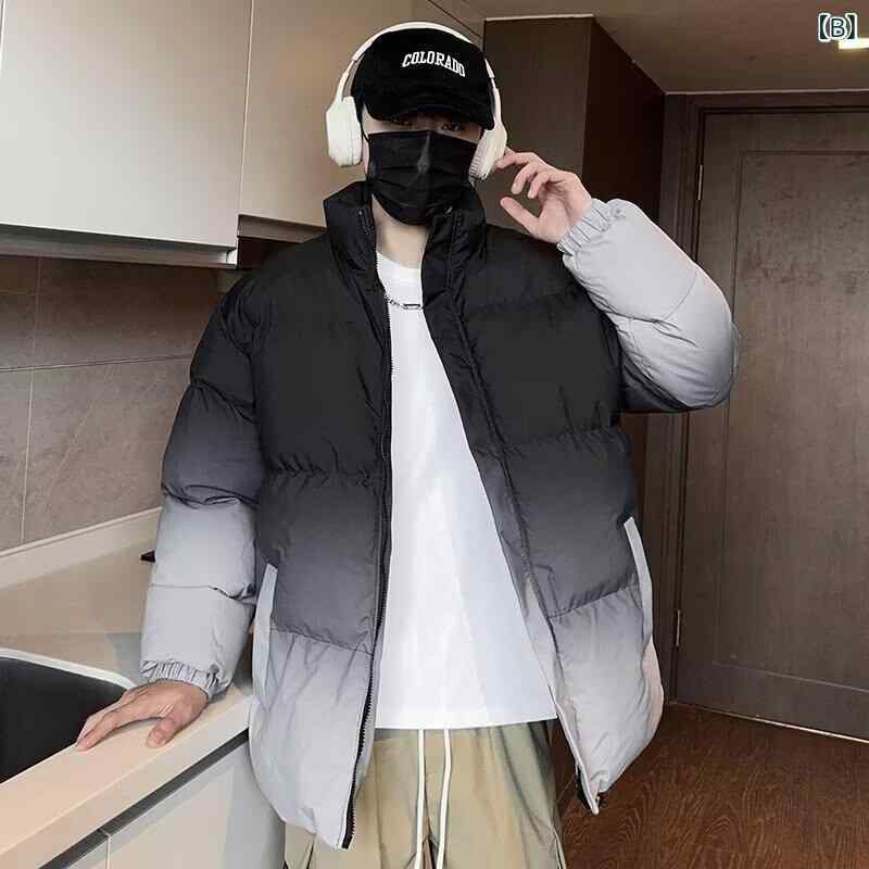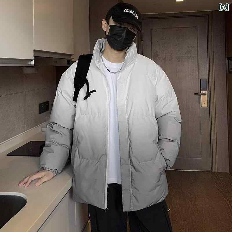 ・スタイル: 韓国風・タイプ: カーディガン・シルエット: ルーズ・前立て: ジッパー・詰め物: コットン・厚み: 加厚・主素材: コットン65%・裏地: ポリエステル35%・用途: 日常・シーズン: 冬・加工: グラデーション・ディテール: ツートンカラー・ポケット: サイドポケット・裾: ストレート・カラー: グレー,ブラック・サイズ: M,L,XL,XXL,XXXL・着丈: 普通(50cm<着丈≤65cm)・襟型: スタンドカラー・性別: メンズ・年齢層: 成人