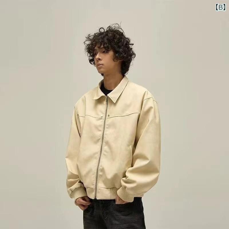 ・機能: 耐摩耗,防風・スタイル: レトロ・襟型: ラペル・シルエット: ルーズ・前立て: ジッパー・厚み: 標準・主素材: ポリエステル・主素材含量: 30-80%・シーン: カジュアル・ディテール: プリント・裾デザイン: ストレート・着丈: 標準・着用方法: アウター・袖丈: ロング・カラー: ブラウン,アーモンド・サイズ: M,L,XL,2XL・袖型: スタンダード・対象年齢: 成人・対象性別: メンズ
