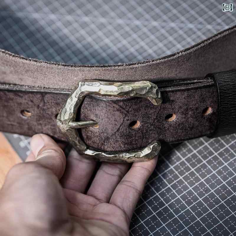 メンズ ベルト アメリカン レトロ 植鞣革 本革 牛革 黄銅 ピン留め 手作り加工 ヴィンテージ スタイル ウエスタン カジュアル アクセサリー 通勤 ビジネス デイリー 使い 耐久性 高級感 天然素材 仕上げ 細部 デザイン クラフトマンシップ