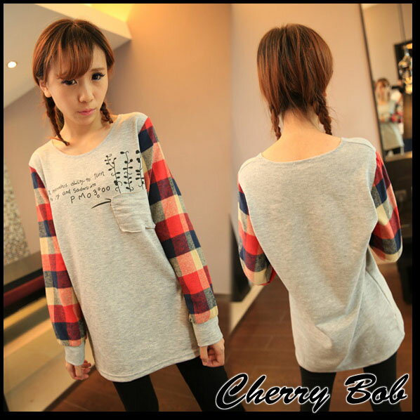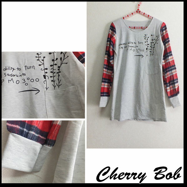袖がタータンチェックの切り替えチュニックーです。 ナチュラルなロゴプリント入りになっており、胸ポケットがついたデザインになってます★ 袖のチェック部分は、モデル着用分と異なります。(実物写真をご参照ください) ■サイズ:着丈67cm、肩幅35cm、袖丈55cm、バスト90cm ■素材 :ポリエステル ■伸縮性なし